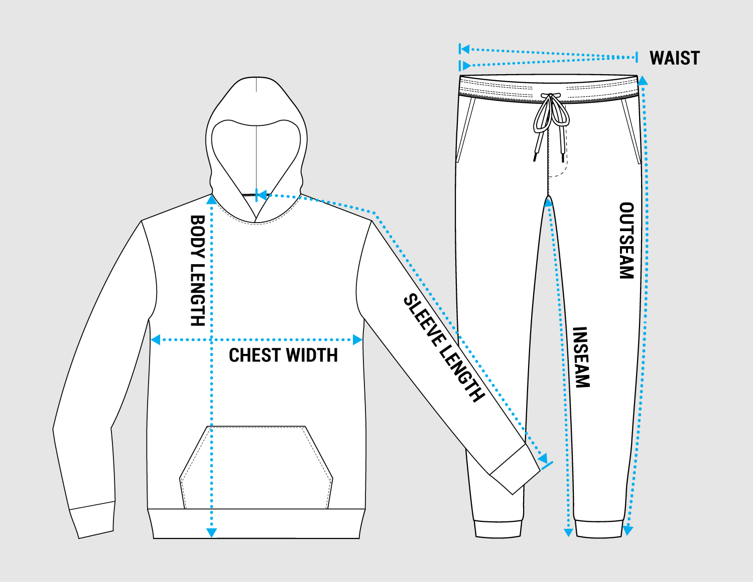 - 1 x 1 ribbing at neck, cuffs and waistband