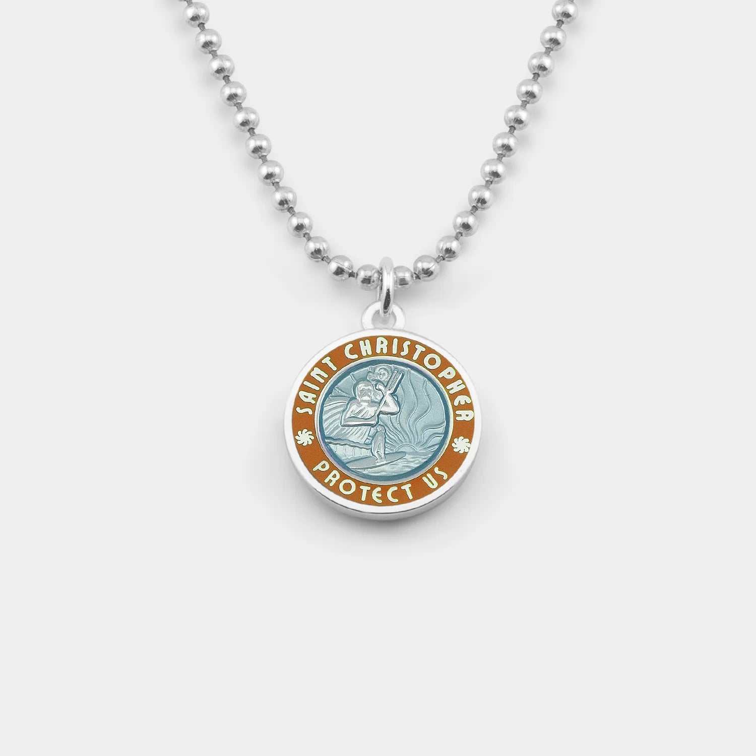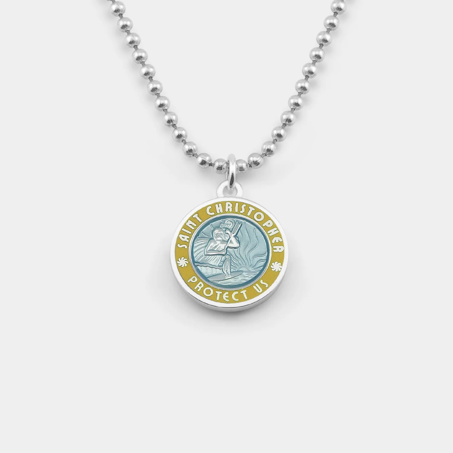 Take a piece of Southern California home with our cute and dainty "St Christopher Necklace". The St. Christopher Surf Necklace is perfect for your next adventure! St. Christopher Pendants are also available in small and large sizes making them perfect for layering jewelry. Checkout the small and large sizes.